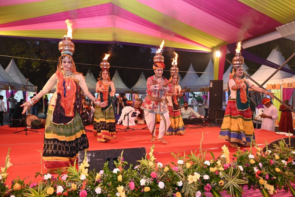 Later, the Rajasthan Tourism Department hosted a spectacular cultural evening, with performances by folk artists showcasing Mashak Vadan, Khartal, Rim Bhavai, Mayur Dance, Phoolon ki Holi, Chari, Ghoomar, and Bhapang Vadan. Assistant Director Mr. Chhatarpal Yadav informed that similar evenings will also be held on July 27 and 28.